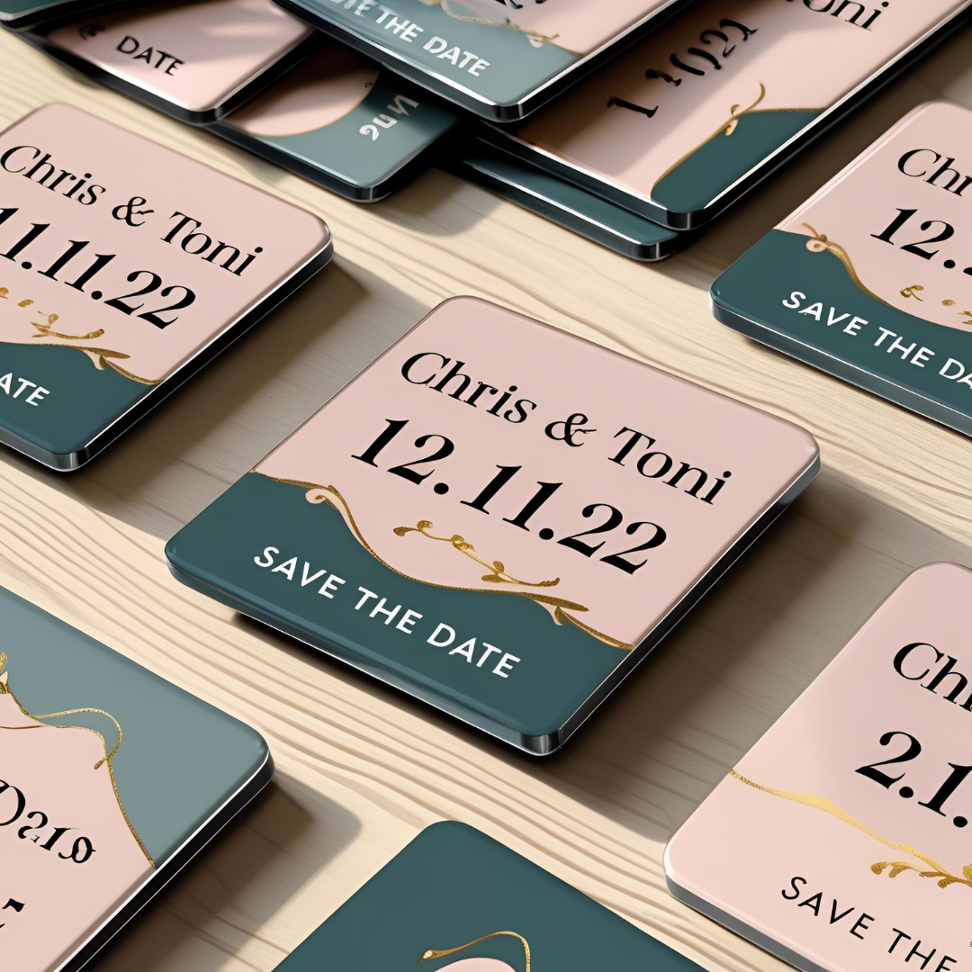 A small memento, made to be remembered. Magnetique Moments are custom 2x2" magnets designed for your most meaningful occasions — save-the-dates, memorials, giveaways, or special announcements.